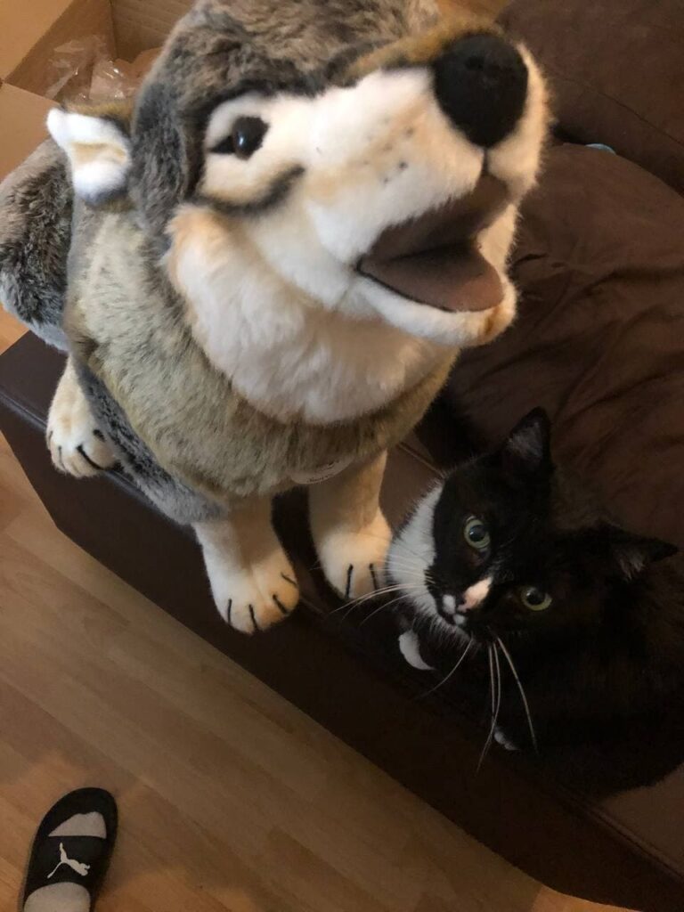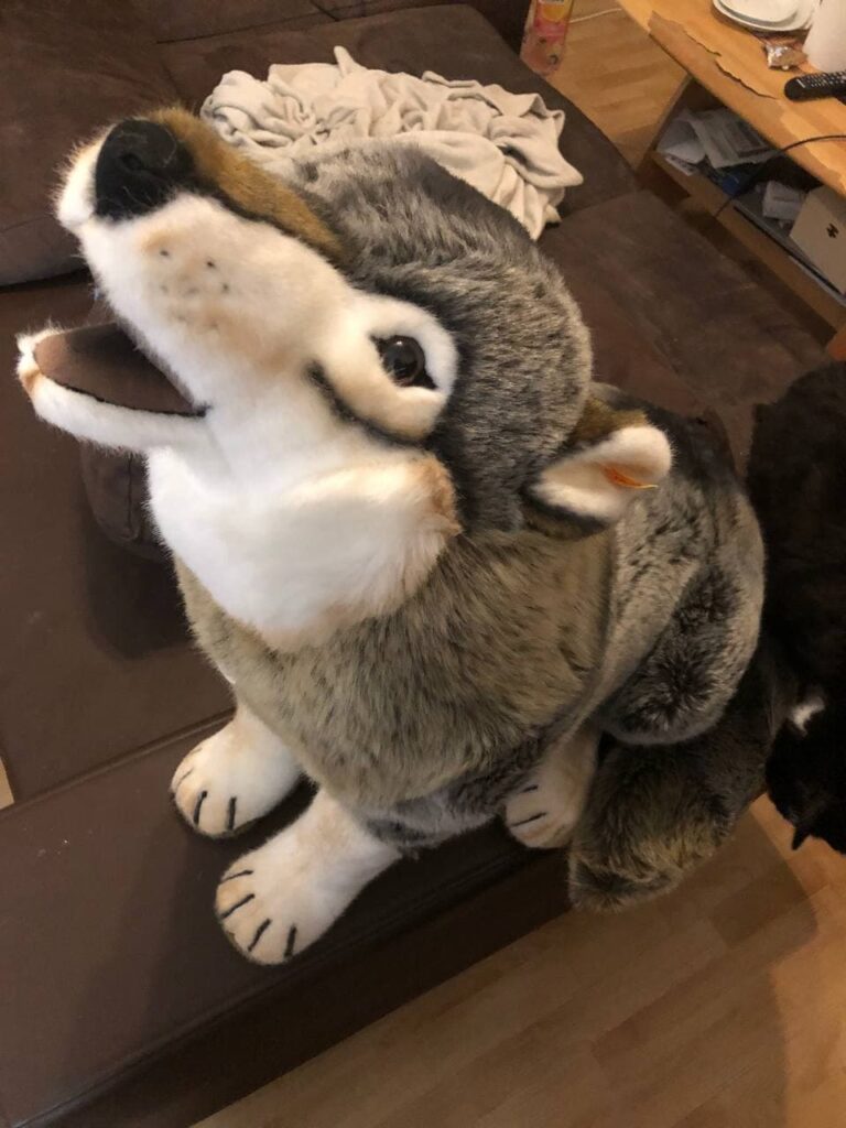Was den Wolf angeht – Ja, Hati hat wirklich nicht mehr alle Latten am Zaun. Das wussten wir aber vorher schon. dogger4Hug Der Wolf ist einfach nur mega plüschig und schick. dogger4Gib