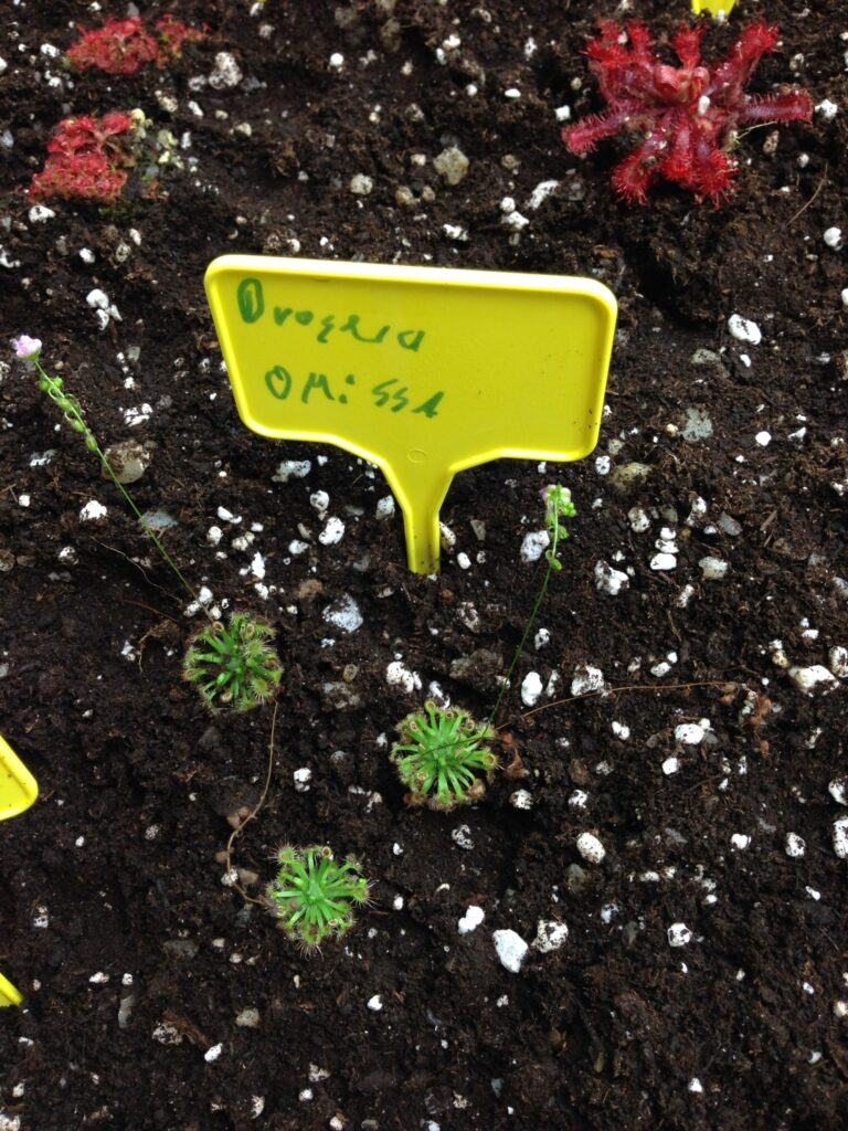 Zusätzlich benötigen die Pflanzen eine warme Wachstumsumgebung (wie z. B. ein Gewächshaus oder ein Terrarium) und eine hohe Luftfeuchtigkeit. Gerade beim Sonnentau kann man gut erkennen, wenn die Luftfeuchtigkeit zu niedrig ist. Die typischen Klebepunkte bilden sich erst, wenn die Luftfeuchtigkeit ausreichend ist.